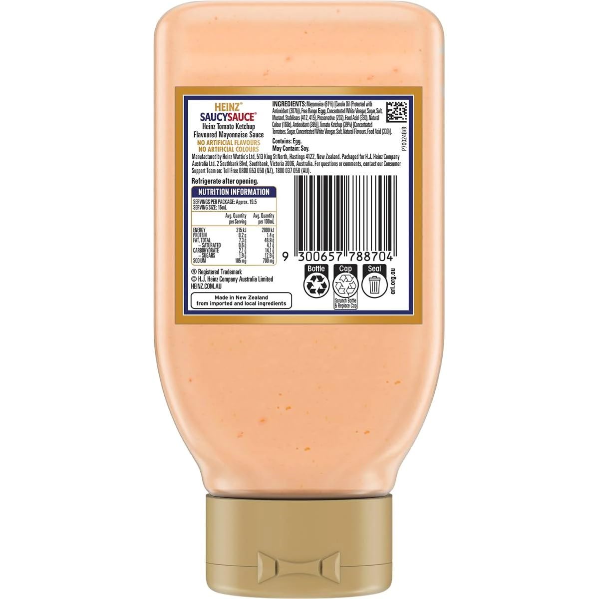 Embark on a flavor adventure with Heinz Saucy Sauce a harmonious fusion of two beloved condiments – mayonnaise and ketchup. This innovative combination delivers a delightful and versatile sauce that adds a burst of flavor to a variety of dishes. Heinz Saucy Sauce strikes the perfect balance between the creaminess of mayonnaise and the tangy richness of ketchup creating a sauce that is both savory and indulgent. Perfect as a dipping sauce sandwich spread or topping for burgers and fries Heinz Saucy Sauce elevates your meals with its unique blend of flavors. The creamy and velvety texture makes it a satisfying addition to wraps salads and other culinary creations. Packaged in the iconic Heinz squeeze bottle for easy and precise dispensing Saucy Sauce offers convenience in the kitchen. Its versatility makes it a go-to condiment for those who enjoy experimenting with different flavor profiles. Whether you're enhancing your favorite snacks or reinventing classic recipes Heinz Saucy Sauce brings a new dimension to your dining experience. Embrace the perfect marriage of mayonnaise and ketchup in one bottle and let Heinz Saucy Sauce inspire your culinary creativity. Elevate your meals with this flavorful and saucy blend that is sure to become a kitchen staple.