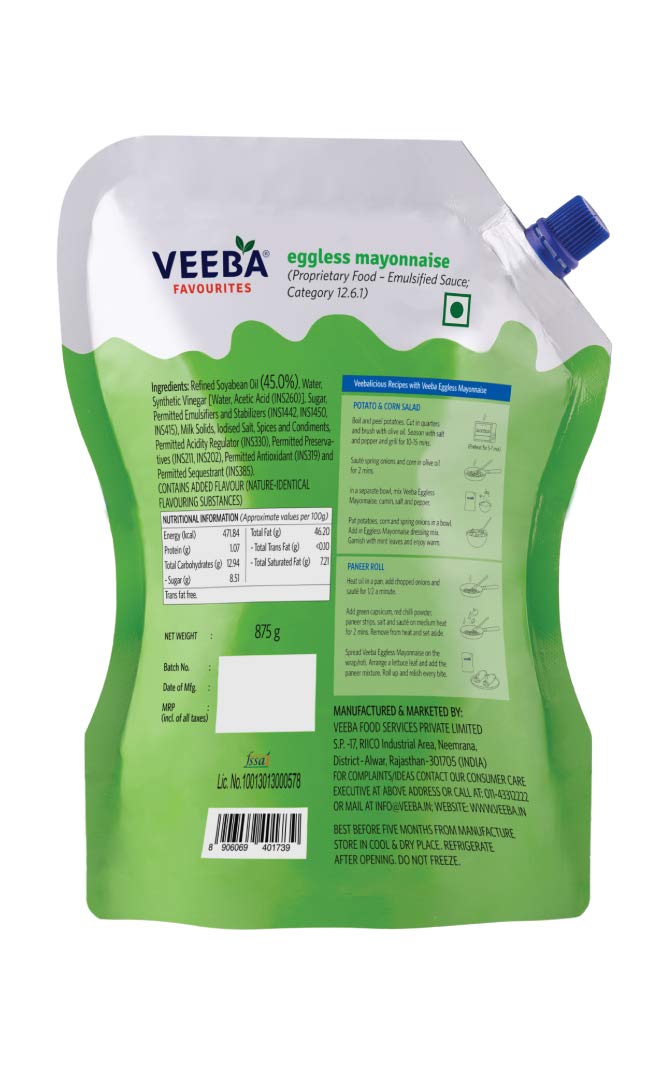 VEEBA Eggless Mayonnaise Chef's Special 875 g & Tomato Ketchup Chef's Special 900 gram tomato