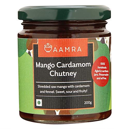 Aamra Homemade Mango and Cardamom Chutney, No Artificial Preservatives, Oil-Free, Gluten-Free- 200 Grams