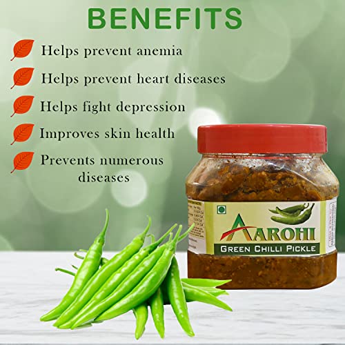 • Ready To Eat Homemade Green Chilli Pickle From Aarohi Is The Ultimate Mood Builder. All Ingredients Are Meticulously Hand-Picked. The Exquisite Quality And Taste Of Our Pickles Are Liked And Revered By All Our Consumers.