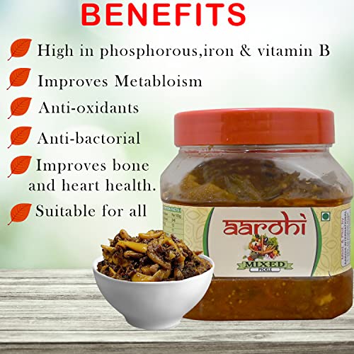 • Aarohi Pickle’ is a pure homemade pickle it contains very less oil and thus can be easily consumed by elderly and kids also.