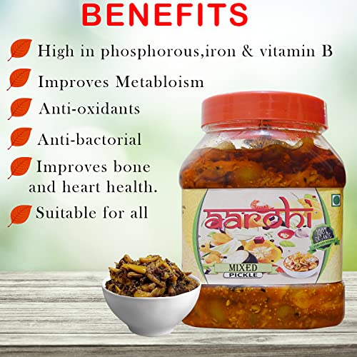 • Aarohi Pickle’ is a pure homemade pickle it contains very less oil and thus can be easily consumed by elderly and kids also.