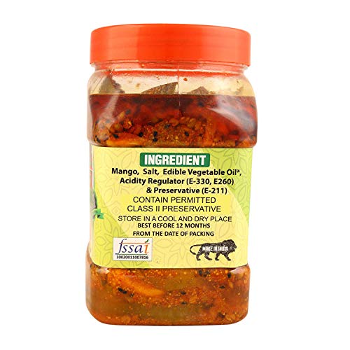 Our special homemade pickles are pure natural traditional style pickle. Every single ingredients is carefully selected and manually checked for quality before being thoroughly washed dried and hand cut into slices. The fresh spices we pick are also carefully measured for taste and consistency. This is one of the most popular and traditional pickles found in almost every Indian home.Specialities:The naturally produced pickle ingredients are mixed with secret and years old recipe.Spices are carefully selected and of best-quality are used in this pickle to make them last longer and keep you healthy.Every bottle is packed carefully in hygienic conditions.Bottles are sealed to keep the pickle fresh and retain its flavor and aroma for long time.A wonderful way to make every meal richer healthier and tastier.The natural taste and flavour of the pickle stimulates and pleases your taste buds.No added chemicals preservatives and flavours.We offer our customers a wide range of 100% pure natural and organic products at their door steps. Our production department checks and ensures that the products are packed in a hygienic and strictly controlled environment.