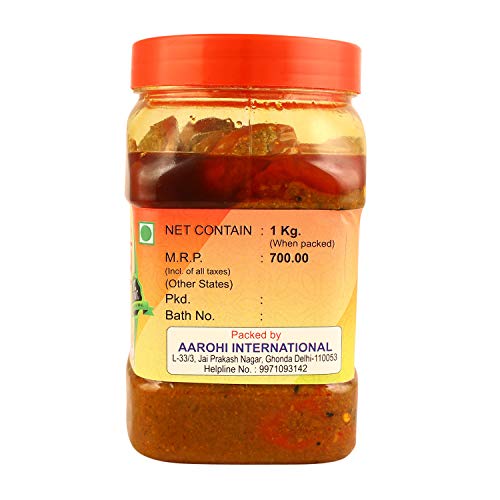 Our special homemade pickles are pure natural traditional style pickle. Every single ingredients is carefully selected and manually checked for quality before being thoroughly washed dried and hand cut into slices. The fresh spices we pick are also carefully measured for taste and consistency. This is one of the most popular and traditional pickles found in almost every Indian home.Specialities:The naturally produced pickle ingredients are mixed with secret and years old recipe.Spices are carefully selected and of best-quality are used in this pickle to make them last longer and keep you healthy.Every bottle is packed carefully in hygienic conditions.Bottles are sealed to keep the pickle fresh and retain its flavor and aroma for long time.A wonderful way to make every meal richer healthier and tastier.The natural taste and flavour of the pickle stimulates and pleases your taste buds.No added chemicals preservatives and flavours.We offer our customers a wide range of 100% pure natural and organic products at their door steps. Our production department checks and ensures that the products are packed in a hygienic and strictly controlled environment.