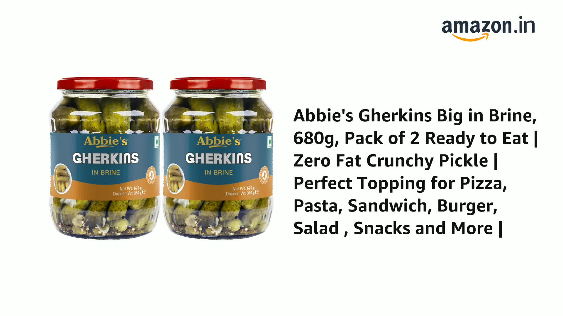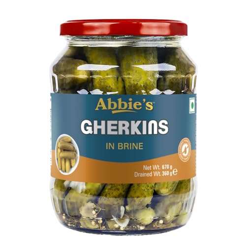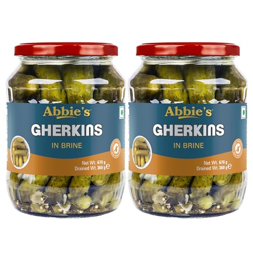 HomeGroceryFlavorsHomemade PicklesAbbie's Gherkins Big in Brine, 680g, Pack of 2 Ready to Eat | Zero Fat Crunchy Pickle | Perfect Topping for Pizza, Pasta, Sandwich, Burger, Salad , Snacks and More |