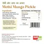 The recipe for this Methia Mango Pickle has been handed down generations. The real taste of coarsely ground methi and mustard comes out in this delicious Gujarati pickle. This Pickle is different from regular mango pickle. It is very delicious as it is prepared with soaked and dried whole methi (fenugreek), pickle spice and mangoes. Our pickles are completely natural, free, and prepared using authentic ingredients.