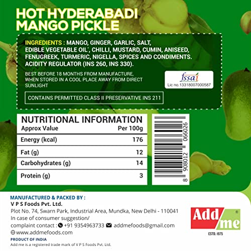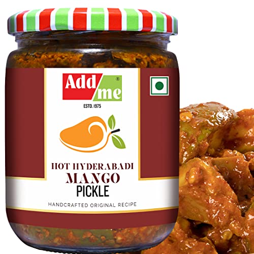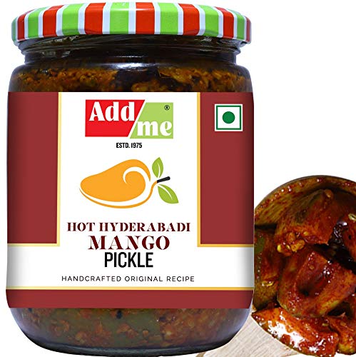 Hot Hydrabadi Mango Pickle is spicy hot Mango Pickle. It has extra kick & flavor. This Mango pickle has lots of red chiilies, fresh ginger & garlic, virgin mustard Oil and selected spices. This Pickle has the heat & punch you look for in a Mango Pickle.