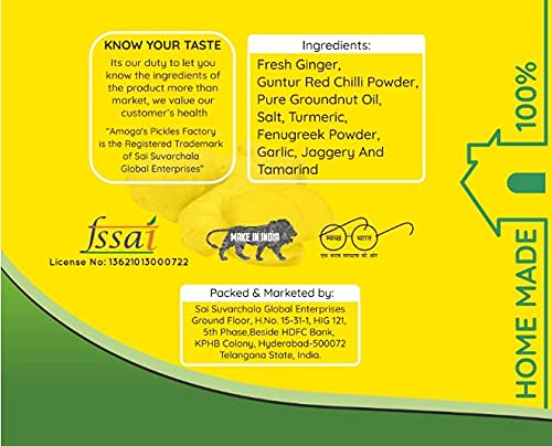 Amoga's is one of the star products of Pickles - the traditional house of Andhra pickles. Ginger has been used as traditional medicine for centuries in India. It has many important compounds minerals vitamins apart from being rich in dietary fiber.