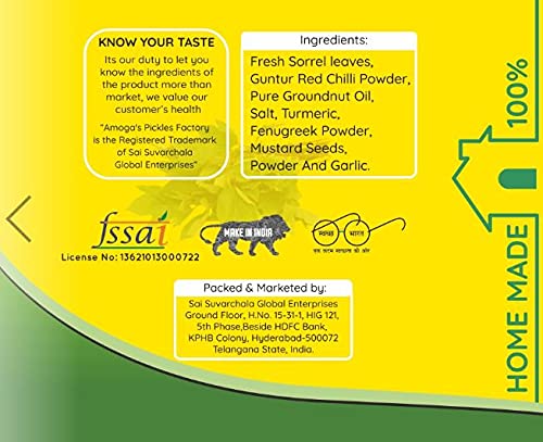Amoga's Pickles Factory Andhra Authentic Pulihora Gongura Pickle 100% Natural Handmade , 1000gm,Pack of 2 (500gm Each)