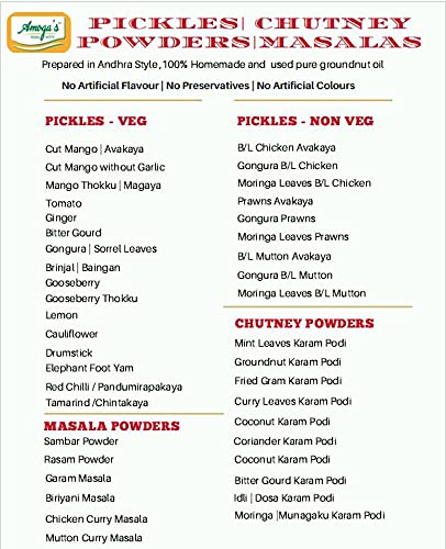 • No artificial preservatives flavours or colours. High quality chillies and spices from Andhra are used.