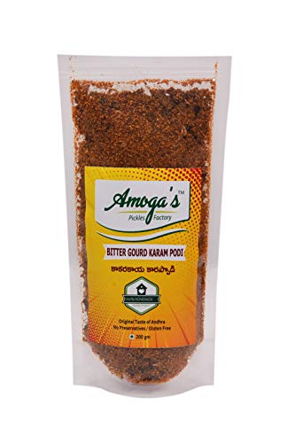 Amoga's present Andhra's Bitter Gourd Pickle available in mini pack. Eat Healthy Live Healthy and Bitter Gourd Karam Podi Add ghee/edible oil and it goes with hot plain rice roti idly dosa vada or any other snack.