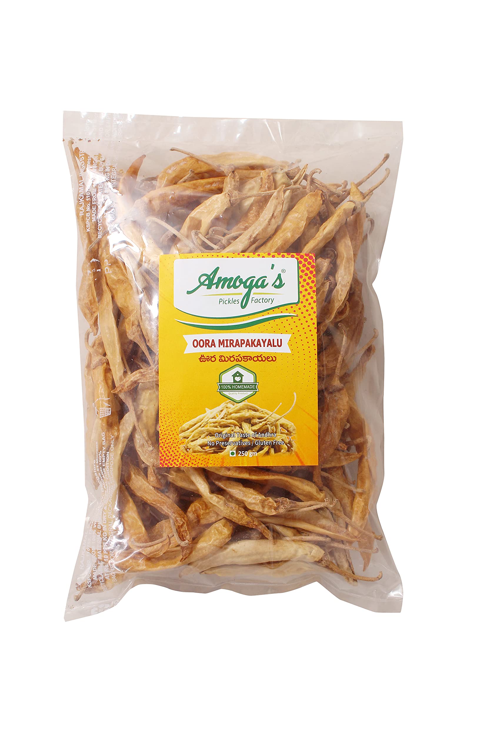Uppu Mirapakaya is South Indian Favourite which is taken with Sambar/ Rasam /Curd Rice.Its gives an worderfull tasteNeed to fry the chillies in Oil and use them.We process this chillies with Preimium Chillies Home made Curd.Raw chilies are marinated in curd/buttermilk and stuffed with salt which is then sun dried to crisp and stored in an airtight container.