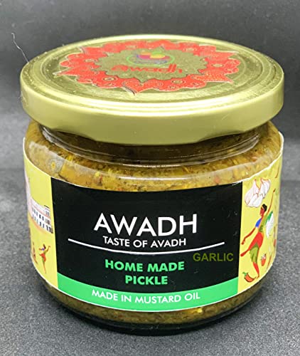 AWADH-Garlic Pickle | Lehsun Ka Achaar | Hot Tangy Sour & Spicy | Lucknow-Style Homemade Pickle | Sun-Dried. No Artificial Preservatives & Colors Made in Mustard Oil- 250g