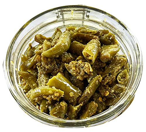 • Its Desi Achar Lick your fingers and get firey with our Hot and spicy Green chili pickle. Farm-fresh green chilies infused with organic mustard oil rai seeds and chosen spices make the classic blend for this hot and tangy green chili pickle. Rai seed key