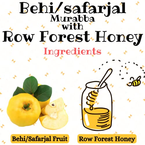 Behi is fruit of Paradise also called as Quince(Safarjal). It has been made by using finest quality Quince fruits and natural row forest honey. Row Forest Honey Natures delicious secret to good health Honey is 100% pure and natural and effective in lowering high blood pressure treating diabetes skin problems dental diseases infected throat and allergies.