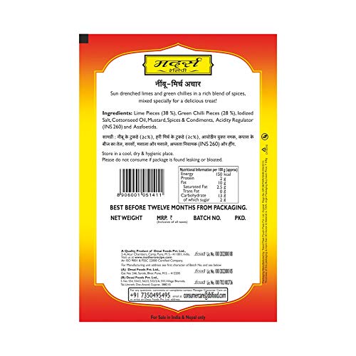 Mother's RECIPE Lime Chilli Pickle Pouch,200 G