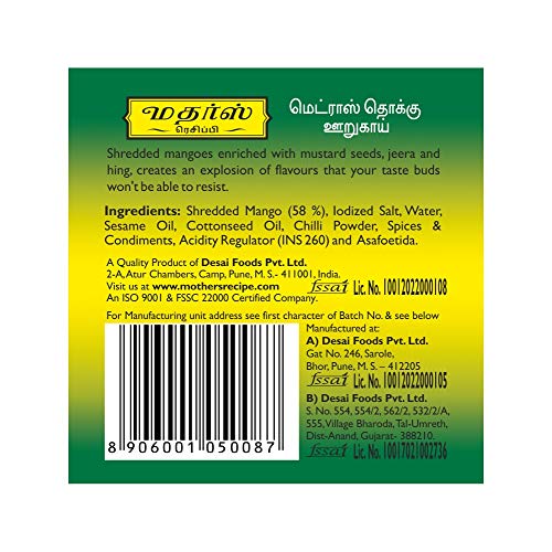 Mother's RECIPE Madras Thokku Pickle Bottle,300 G