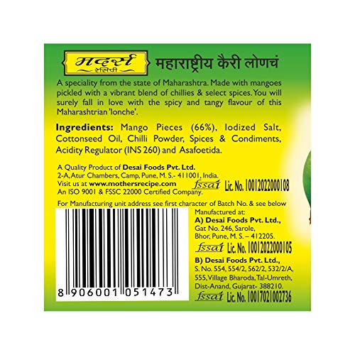 Mother's Recipe Maharashtra Mango Pickle Bottle,300 G