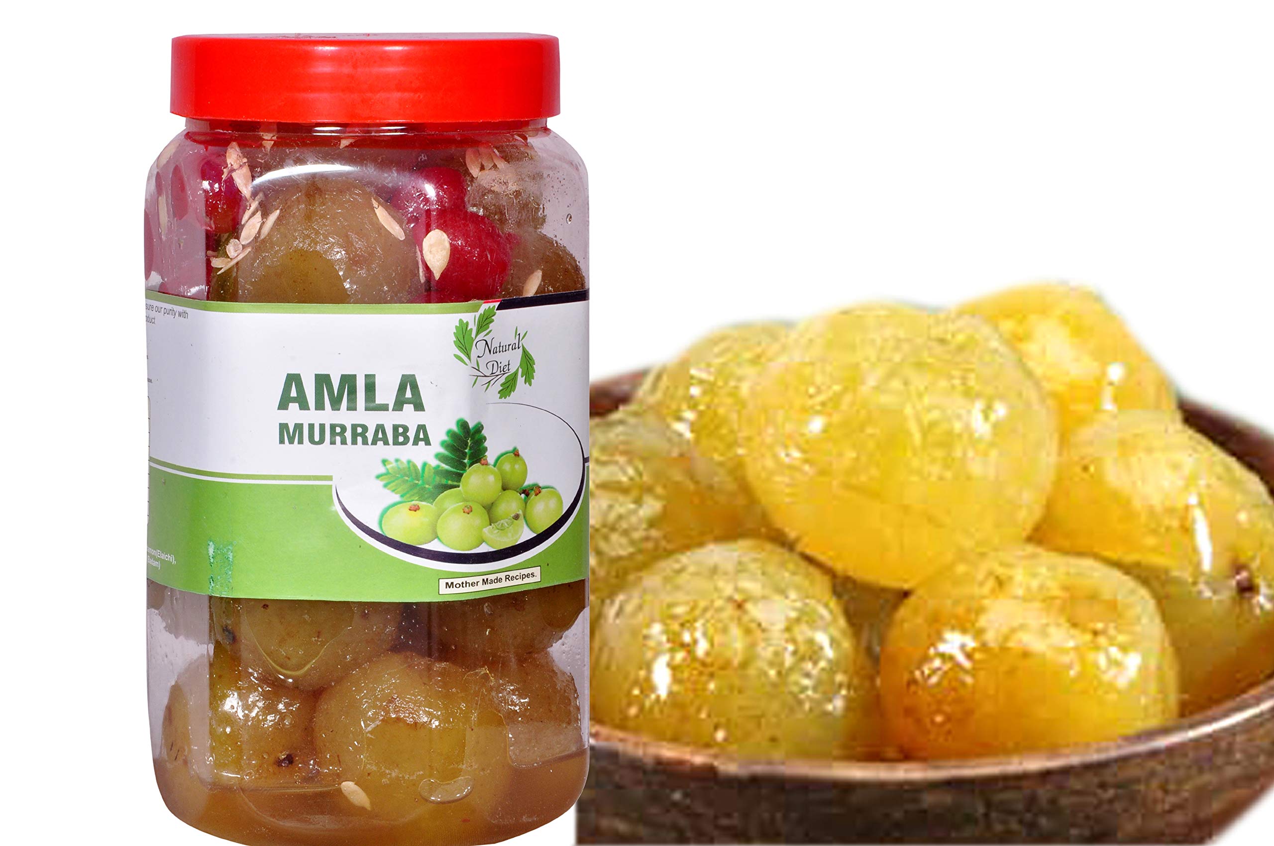 Natural Diet Home-Made Organic Amla Murabba with Almond (Reset Your Eating Habits with a Healthy Solution) 900 Grams