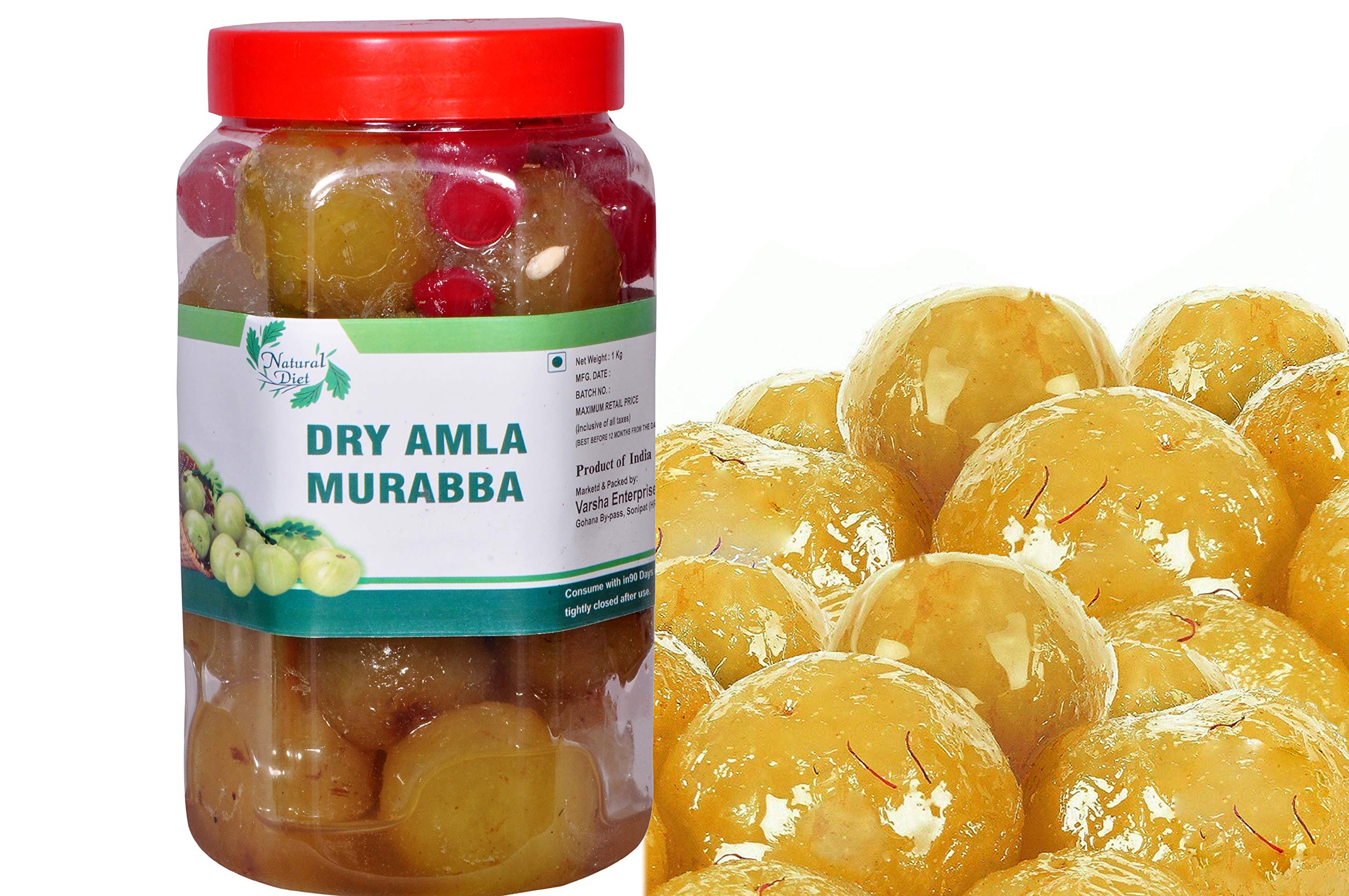 Natural Diet Home Made Organic Dry Amla Murabba (Marmalade) with Almond (Badam) (Ingredient: Fenugreek, Muskmelon Seeds, Red Karonda Cherry, Clove, Elam, Crystals, Cardamom/Elichie, Palm) 900 Grams