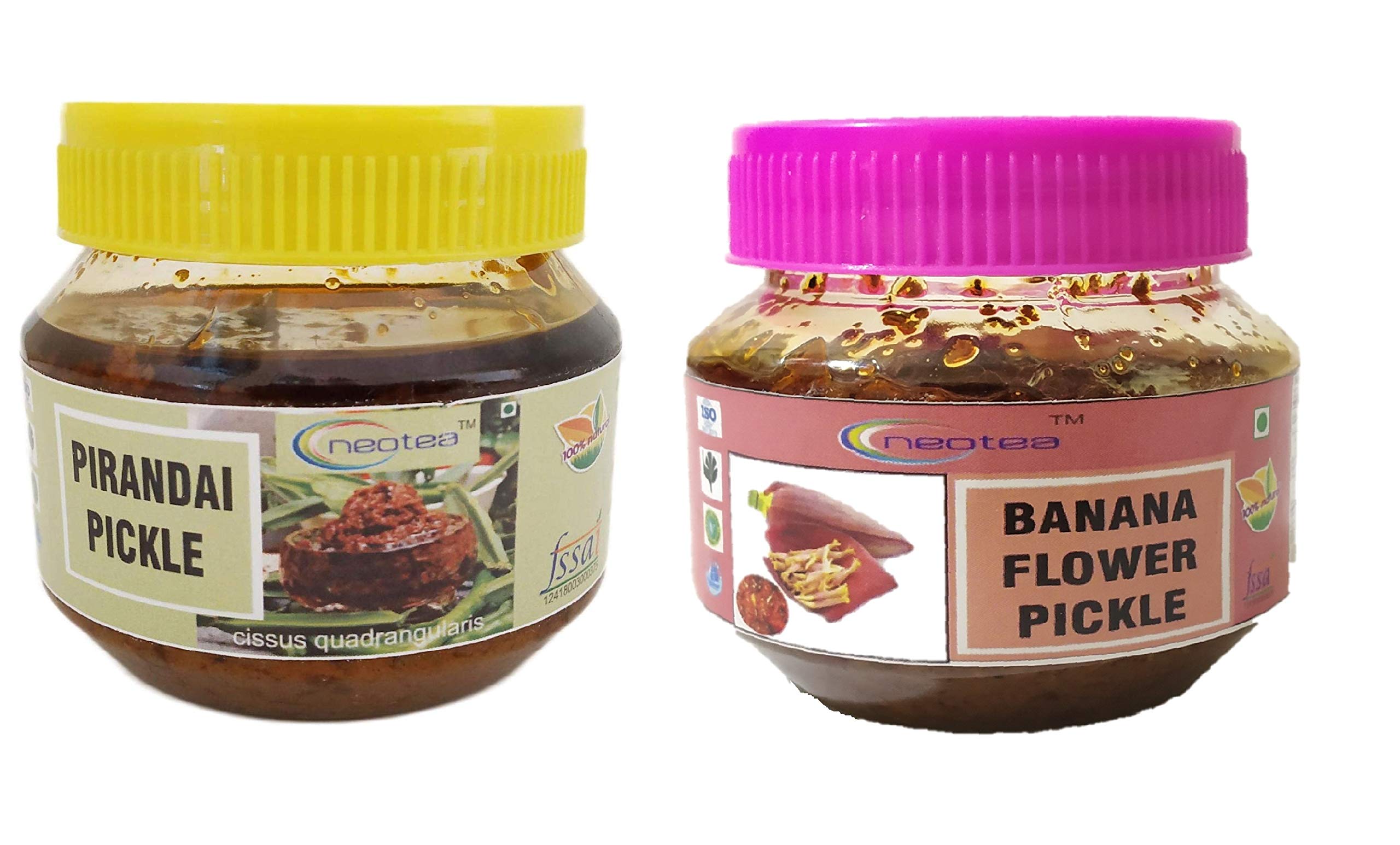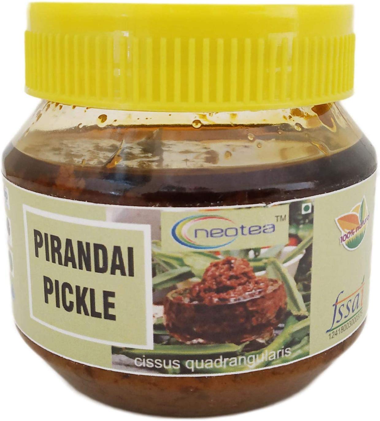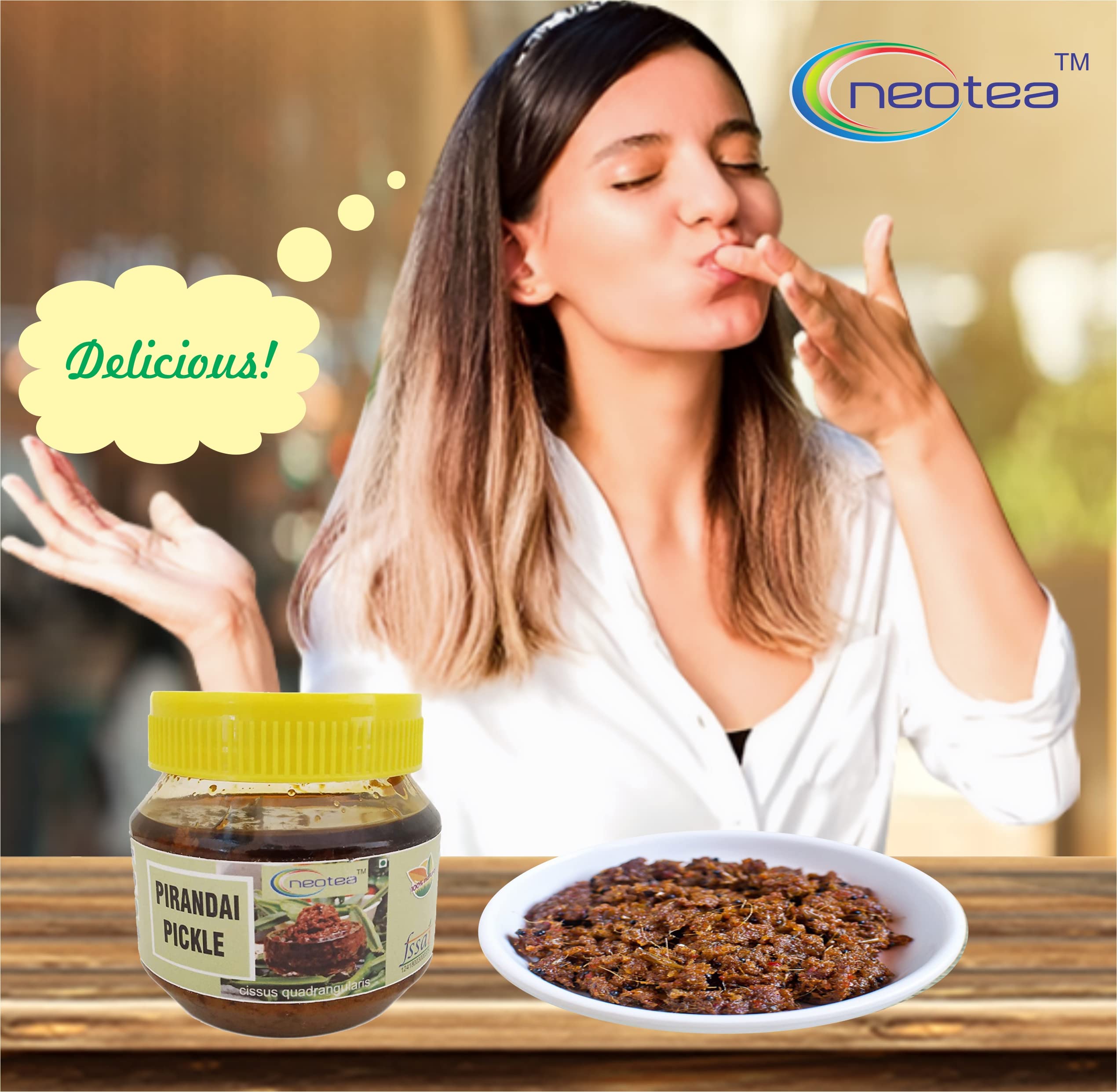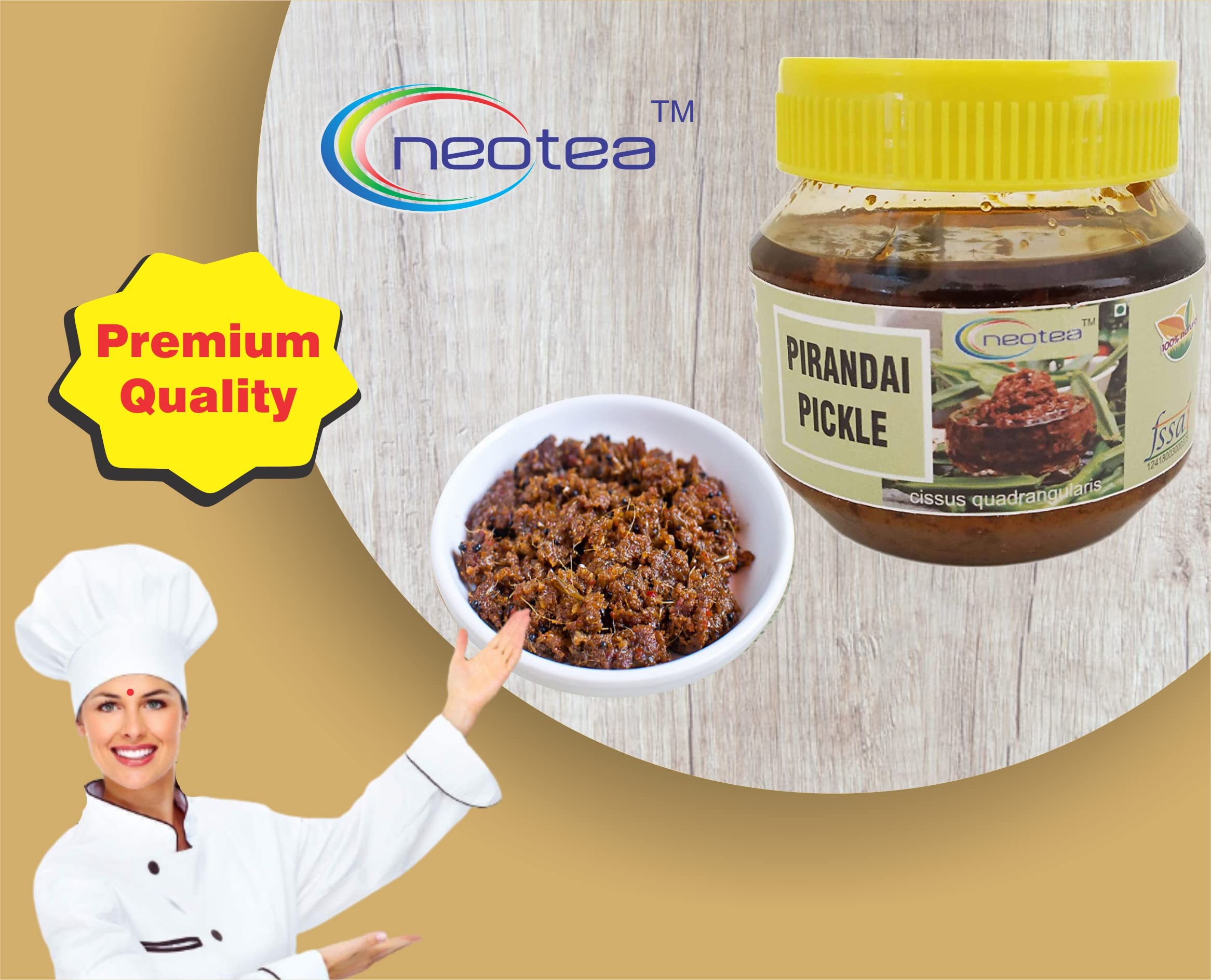 Neotea pickles are vegetables or fruit sometimes cut into pieces which have been kept in vinegar or salt water for a long time so that they have a strong sharp taste. Pickle is a cold spicy sauce with pieces of vegetables and fruit in it. Assamese:harajoraa-latabengali:harajoragujarati:asthisrnkhala hindi:asthibhangakannada:vajravallikonkani:sandu ballimalayalam:changalamparandamarathi:ghanasvelghonuskandekandavelmhasveltamil:arukanikiruttipirantaivaccira-vallitelugu:gudametigenalleruvajravalli