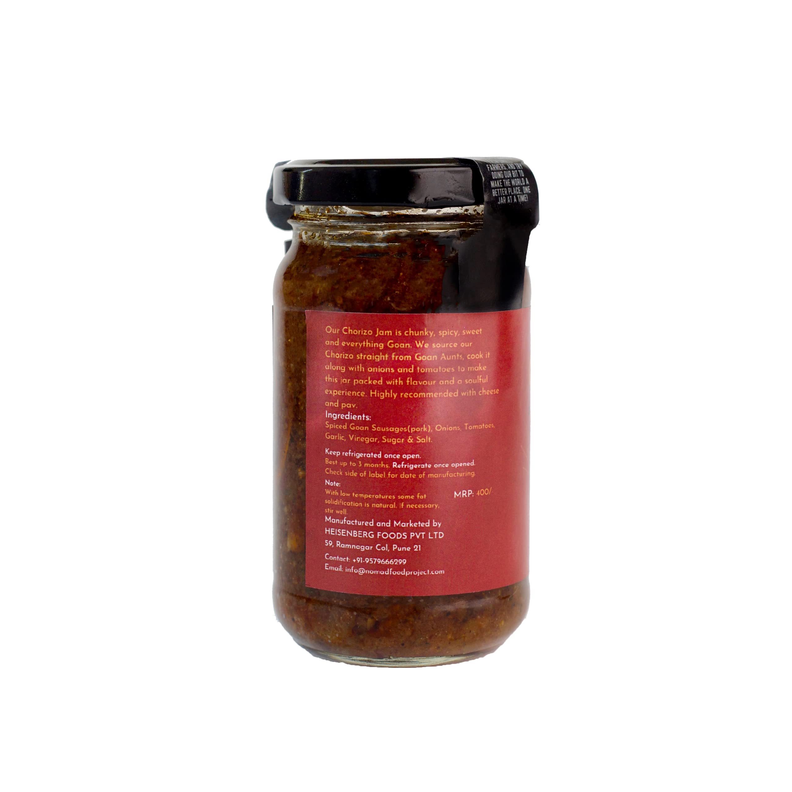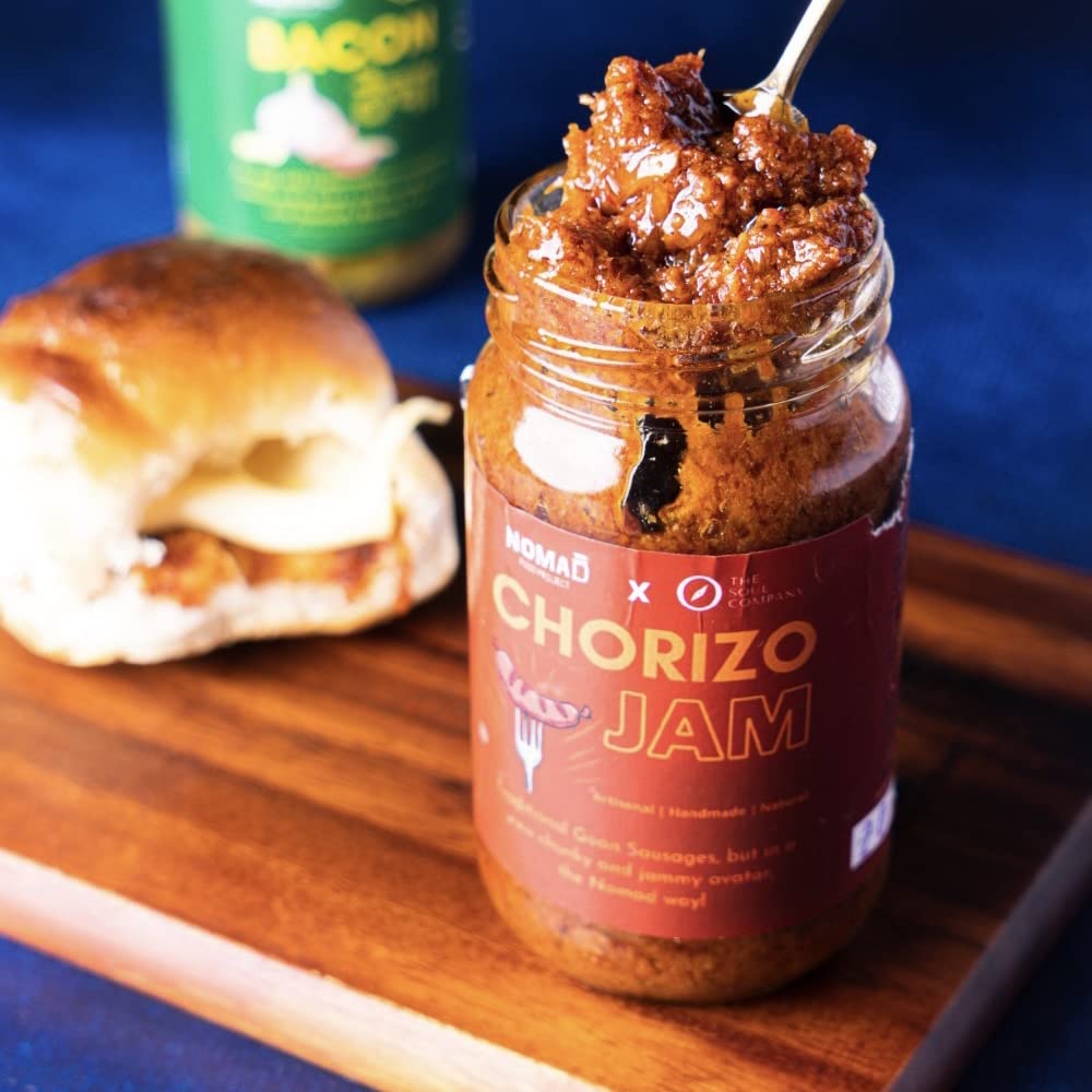 Nomad Food Project Chorizo Jam | 200gms| Pork Jam Chunky Spicy Sweet | Smear on Bread Sandwiches Pasta Pizza Potatoes Eggs Chips | Ready-To-Eat