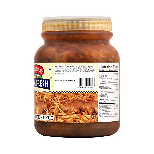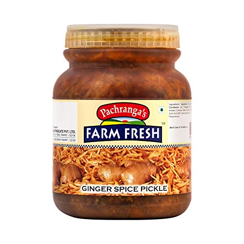 Original North Indian taste Ginger spice pickle in edible oil. Real pieces of Ginger. Excellent partner to Paranthas Roti Dal Chawal and so on! World famous Pachranga brand from Panipat.