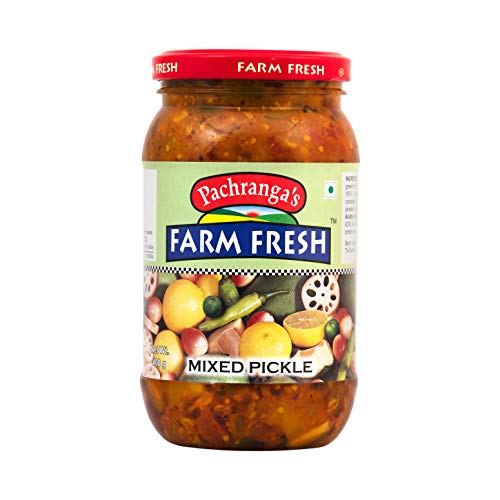 The Finest Flavour of Indian Tradition Since 1925. Original North Indian taste mixed pickle in edible oil. Real pieces of Mango Lime Green Chillies Lotus Root Dela etc. Excellent partner to Paranthas Roti Dal Chawal and so on! World famous Pachranga brand from Panipat.