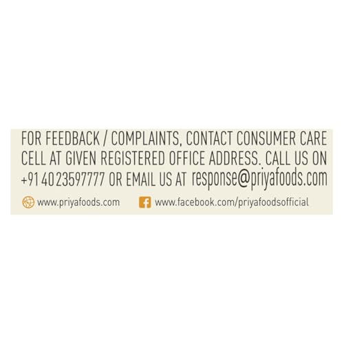 Bringing traditional taste to your kitchen for 40 years. Priya is the registered trademark of Ushodaya Enterprises Private Limited, a part of renowned Ramoji Group headquartered in Hyderabad.Priya Foods's state-of-the-art and most expansive manufacturing facility is certified with Food Safety Management System - ISO 22000 : 2005 by Intertek certification Limited, United Kingdom and HACCP certification by Intertek India Private Limited, New Delhi; HALAL certified by HALAL India, Chennai and successfully audited by United States Food and Drug Administration (USFDA). These certifications signify an assurance to consumers, marketers, regulatory agencies and others regarding the quality and safety of the companys products, hygiene and sanitation standards adopted by the facility, and their continued reliability.