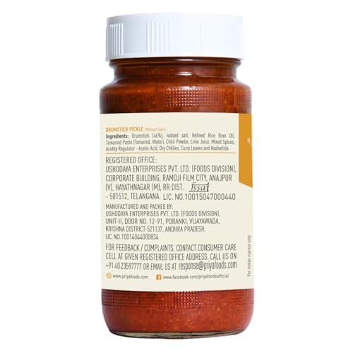 • WHOLESOME INGREDIENTS - Superfood drumsticks iodized salt refined rice bran oil tamarind extract and other spices are used to make this unique and delicious pickle.