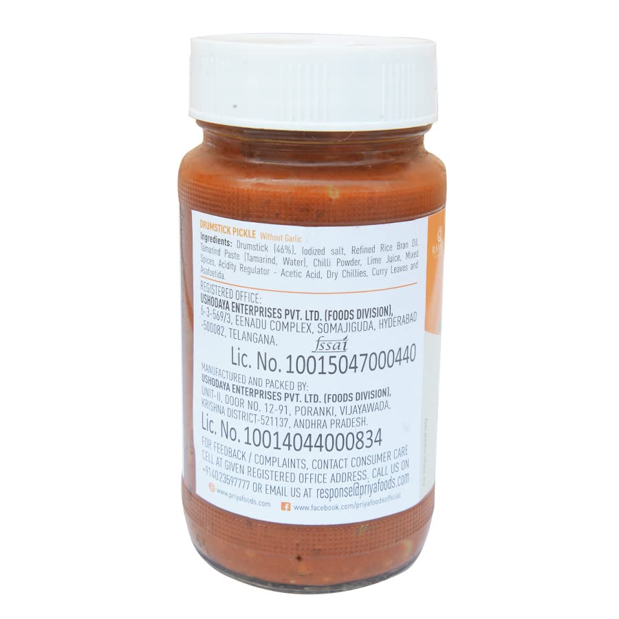 Priya Drumstick Pickle without Garlic, 300g - Homemade Drumstick Achar - Traditional Indian Taste