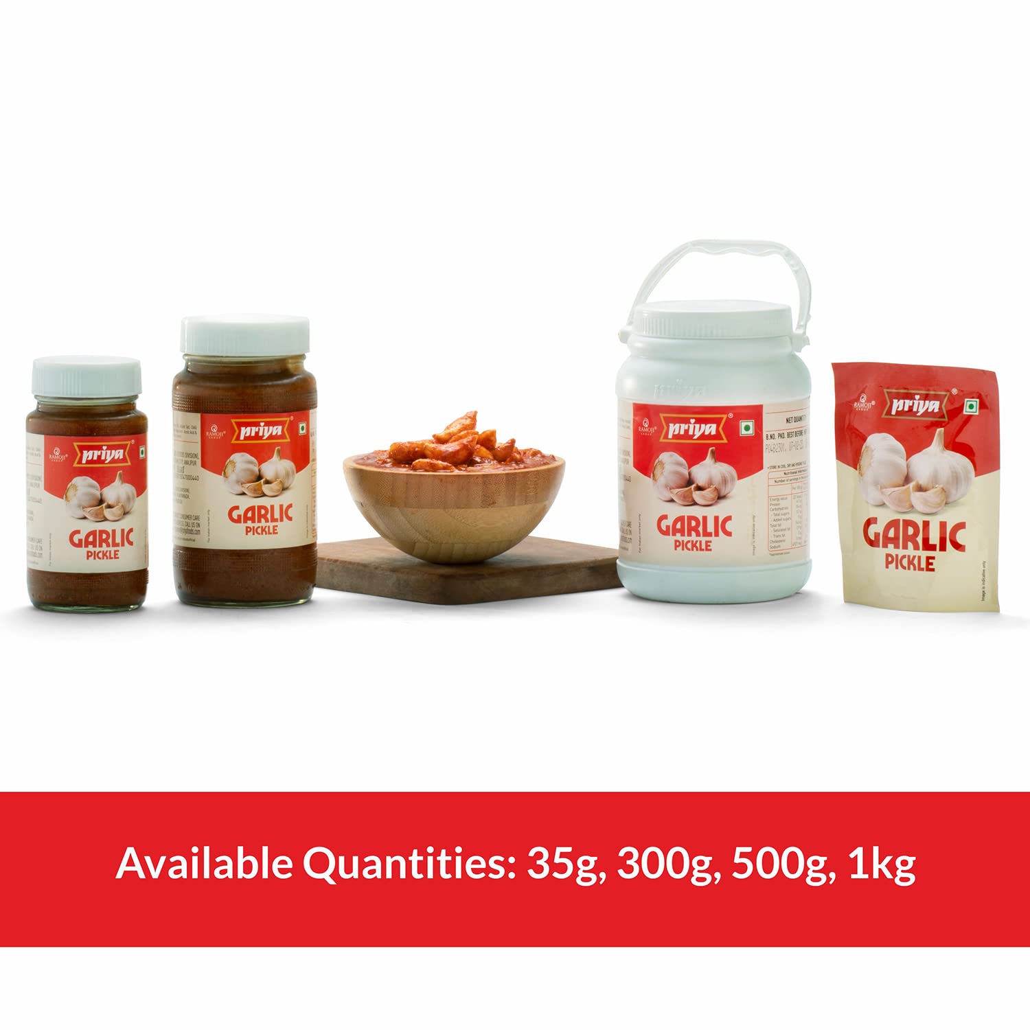 HomeGroceryFlavorsHomemade PicklesPriya Garlic Pickle 300g - Authentic Telugu Style Achar | Traditional South Indian Taste | Homemade Lahsun Achar | Tangy and Spicy| With Garlic Pieces and Mixed Spices| Glass Jar