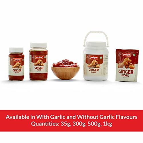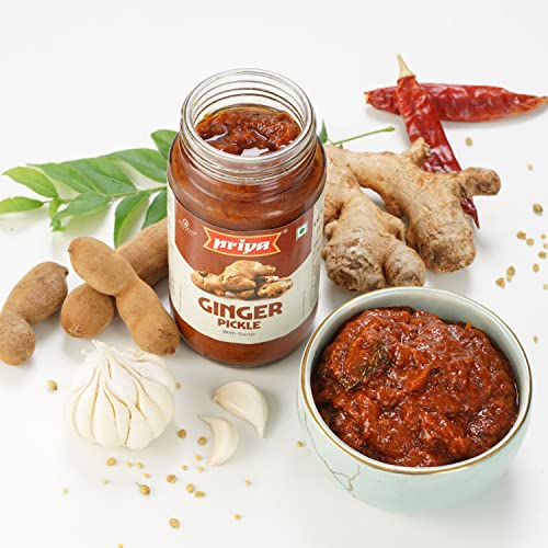 Priya Ginger Pickle With Garlic,500G-Authentic Telugu Style Adrak Achar|Traditional South Indian Taste|Homemade Andhra Pickles|Khatta Meetha|With Tamarind Paste,Jaggery&Mixed Spices|Glass Jar