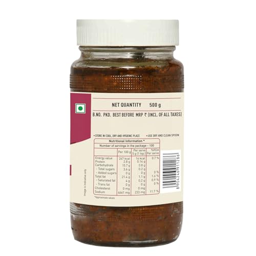 • STORAGE: Use a dry spoon for serving mix well before use keep the oil layer on top of the pickle for freshness. Store in a dry and cool place. It has a long shelf life of 12 months.