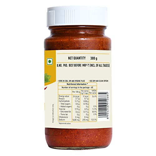 • STORAGE: Use a dry spoon for serving mix well before use keep the oil layer on top of the pickle for freshness. Store in a dry and cool place. It has a long shelf life of 12 months.