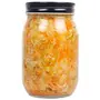Our Carrot Sauerkraut is made with finely sliced green cabbage and carrots which has"pickled" by introducing to the mix a bacteria that produces lactic acid. Sauerkraut is rich in fiber vitamins and miner. Its probiotics o help your body absorb these nutrients more easily.It is a great source of probiotics which provide many health benefits. It o contains enzymes that help your body absorb nutrients more easily.With a taste profile that can be described as distinctly sour it is a result of these bacteria "eating up" the naturally occurring sugars in the cabbage and carrots.Sauerkraut promotes healthy flora and may increase the absorption of mood-regulating minerfrom your diet. Both of these help and maintain .Try a few forkfuls in your salad sandwich or just as a condiment to your meal.