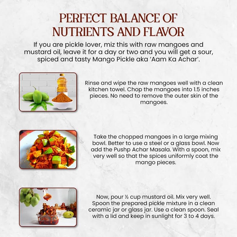 HomeGroceryFlavorsHomemade PicklesPushp Achar Masala | 500g | Premium Blend of Traditional Spices | Ready-to-Use Pickle Mix | Authentic Homemade Pickle Masala | No Added Preservatives