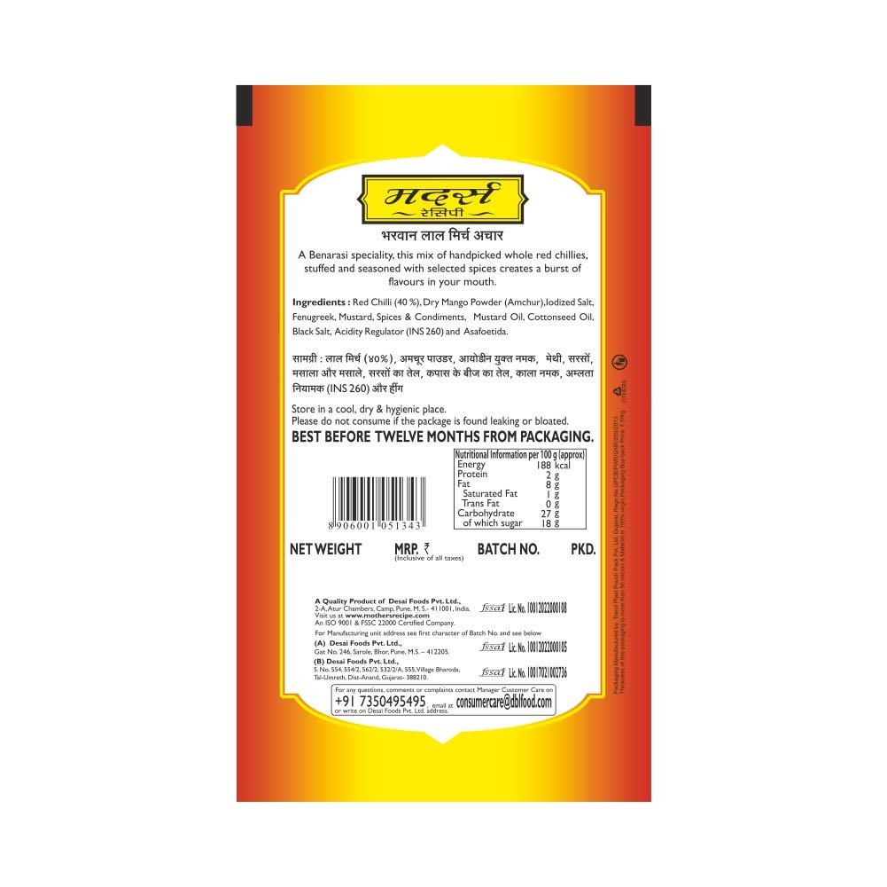 I usually like Mother's Recipe stuff but was disappointed by this pickle. The filling is almost all Amchur powder and salt. I understand that Amchur powder is really cheap compared to other spices traditionally used in filling ( mustard seeds, fennel, etc) but this is just too much Amchur.