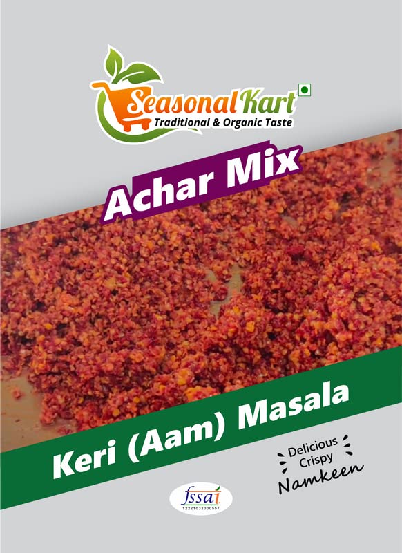Seasonal Kart Rajasthani Homemade Achar Masala| Ready to Use Pickle Masala |Natural Ingredients | No Artificial Color Or Preservatives| About Us: We believe that our reputation must be based on the quality of our products. We have travelled across the country to handpick the finest quality products at the best possible rates. We maintain great taste and guaranteed quality throughout the year and our products are sure to be your new favorites after your first purchase. About Product: Achar or pickle is an important part of any Indian household. It's a condiment with all meals and many kinds of snacks. Seasonal Achar Masala is a blend of fresh aromatic and homemade rajasthani spices that are ground together to give your mango and vegetable pickles a great flavor and rich color. Seasonal Kart is a blend of fresh and aromatic spices that is ground together to be the assistive agent that can make you the creator of the most perfect pickles and condiments. Pickels are the best suited with Indian dishes responsible for the punch it gives to food on the plate. Be it the most loved Aam Ka Achaar or Mixed Vegetable Achaar our Achaar Masala is guaranteed to be the best because our spice blend is simply the best. Country of Origin: India Seasonal Kart: Traditional & Organic Taste