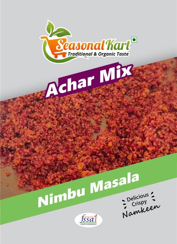 Seasonal Kart Rajasthani Homemade Achar Masala| Ready to Use Pickle Masala |Natural Ingredients | No Artificial Color Or Preservatives| About Us: We believe that our reputation must be based on the quality of our products. We have travelled across the country to handpick the finest quality products at the best possible rates. We maintain great taste and guaranteed quality throughout the year and our products are sure to be your new favorites after your first purchase. About Product: Achar or pickle is an important part of any Indian household. It's a condiment with all meals and many kinds of snacks. Seasonal Achar Masala is a blend of fresh aromatic and homemade rajasthani spices that are ground together to give your mango and vegetable pickles a great flavor and rich color. Seasonal Kart is a blend of fresh and aromatic spices that is ground together to be the assistive agent that can make you the creator of the most perfect pickles and condiments. Pickels are the best suited with Indian dishes responsible for the punch it gives to food on the plate. Be it the most loved Aam Ka Achaar or Mixed Vegetable Achaar our Achaar Masala is guaranteed to be the best because our spice blend is simply the best. Country of Origin: India Seasonal Kart: Traditional & Organic Taste