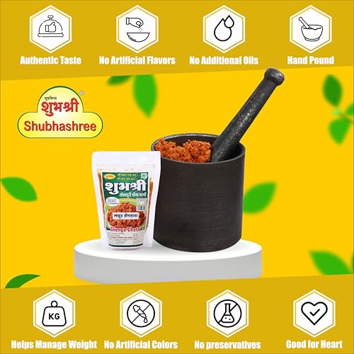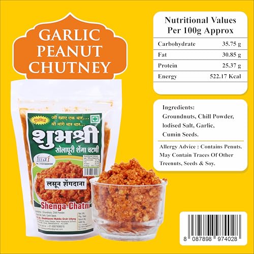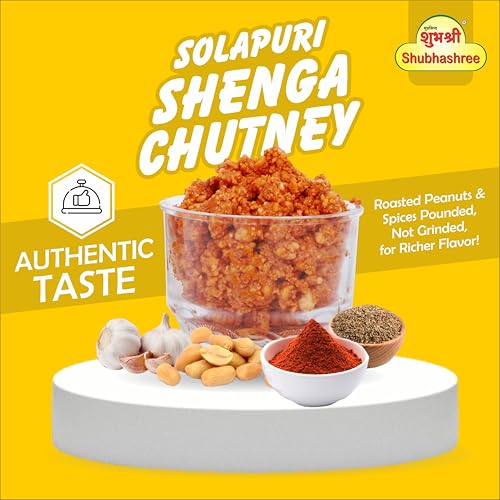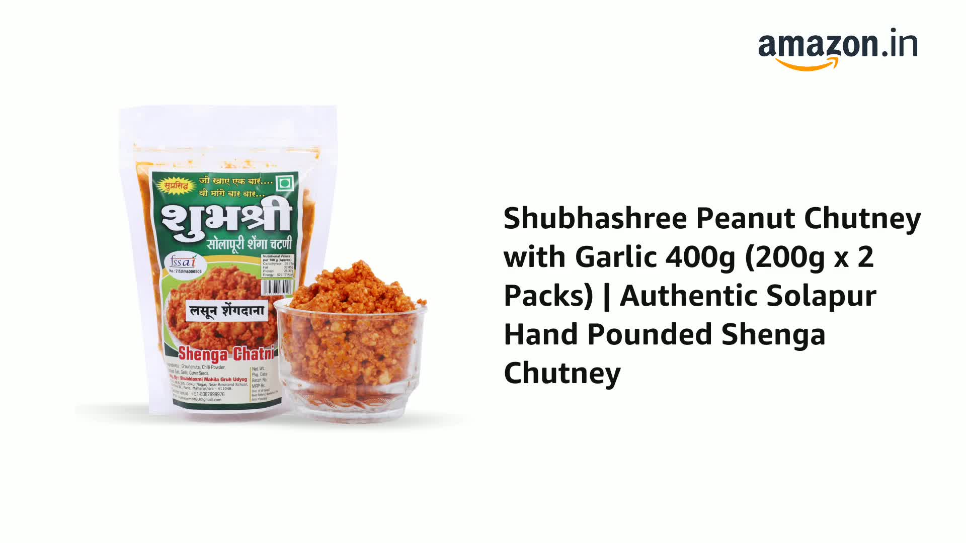 Shubhashree Peanut Chutney with Garlic 400g (200g x 2 Packs) | Authentic Solapur Hand Pounded Shenga Chutney