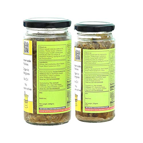 The Achaari Meetha Raita, 100% No Oil & No Preservative, Grated Homemade Mango Pickle, Combo Pack (400 Grams + 250 Grams)