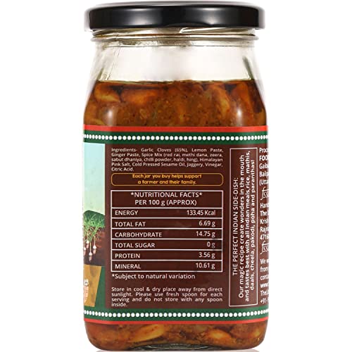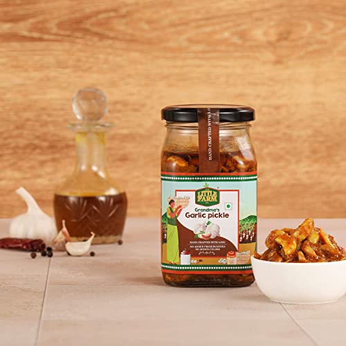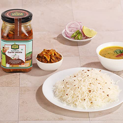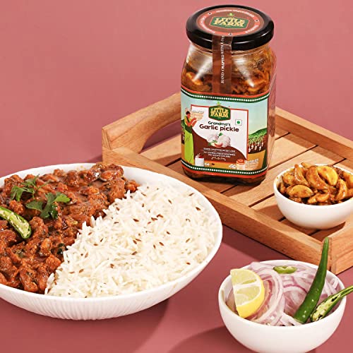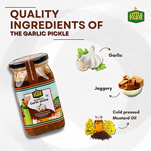THE LITTLE FARM CO Garlic Pickle - Lehsun ka Achar | Less Oil Mustard Base Homemade Garlic Pickles with Jaggery | No Added Preservatives No Artificial Flavours | Traditional Recipe 400g