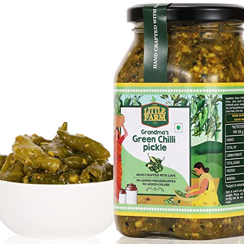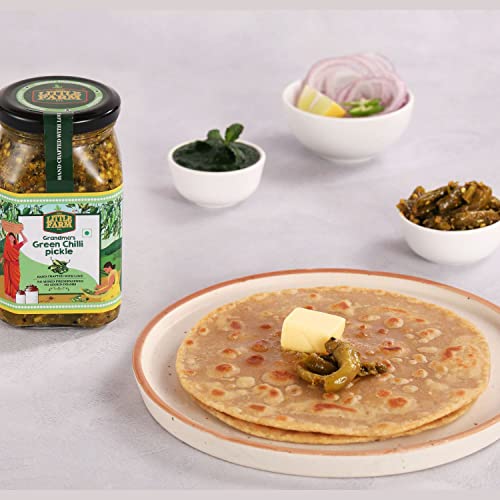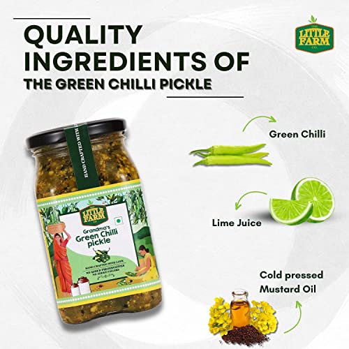HomeGroceryFlavorsHomemade PicklesTHE LITTLE FARM CO Green Chilli Pickle - Hari Mirch ka Achar | Less Oil Mustard Base Homemade Chilli Pickles Chopped | No Added Preservatives No Artificial Flavours | Traditional Recipe 400g