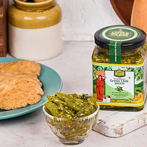 THE LITTLE FARM CO Green Chilli Pickle - Hari Mirch ka Achar | Less Oil Mustard Base Homemade Chilli Pickles Chopped | No Added Preservatives No Artificial Flavours | Traditional Recipe 400g