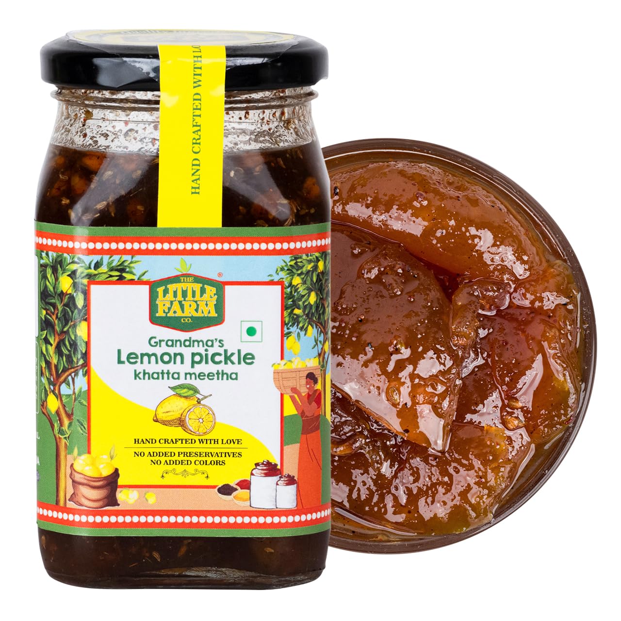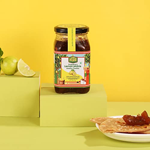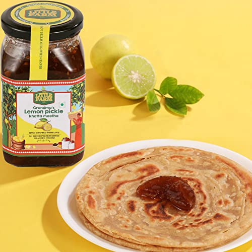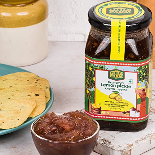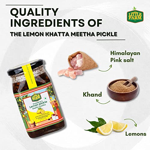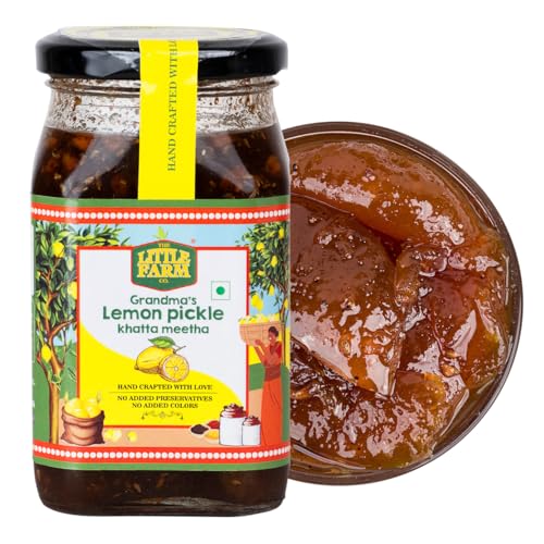 THE LITTLE FARM CO Sweet & Sour Lemon Pickle - Nimbu ka Achar | Oil Free | Homemade Khatta Meetha Nimbu Pickles | No Added Preservatives No Artificial Flavours | Traditional Recipe 450g