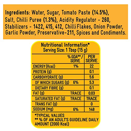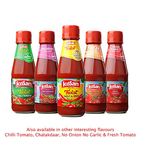 Add some tang and spice to your plates with the Kissan Sweet and Spicy Sauce. Use it as a dressing or as a key ingredient in your dish and this sauce is sure to add a unique taste. Dip some crackers chips and nachos or serve this to up the taste of your starters. The Kissan Sweet and Spicy Sauce has a taste that you can never get enough of so go on and enjoy the freshness of real tomatoes and the tanginess of real spices in this delectable sauce.