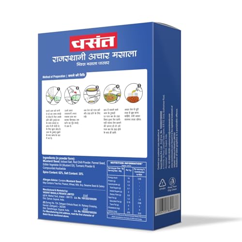 HomeGroceryFlavorsHomemade PicklesVASANT Rajasthani Achar Masala Powder 500Gm | Premium Pickle Masala Powder | Indian Achaar Masala | Taste Maker | No added Colours Flavours and Chemical | Pack of 1