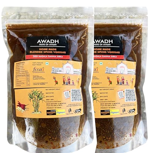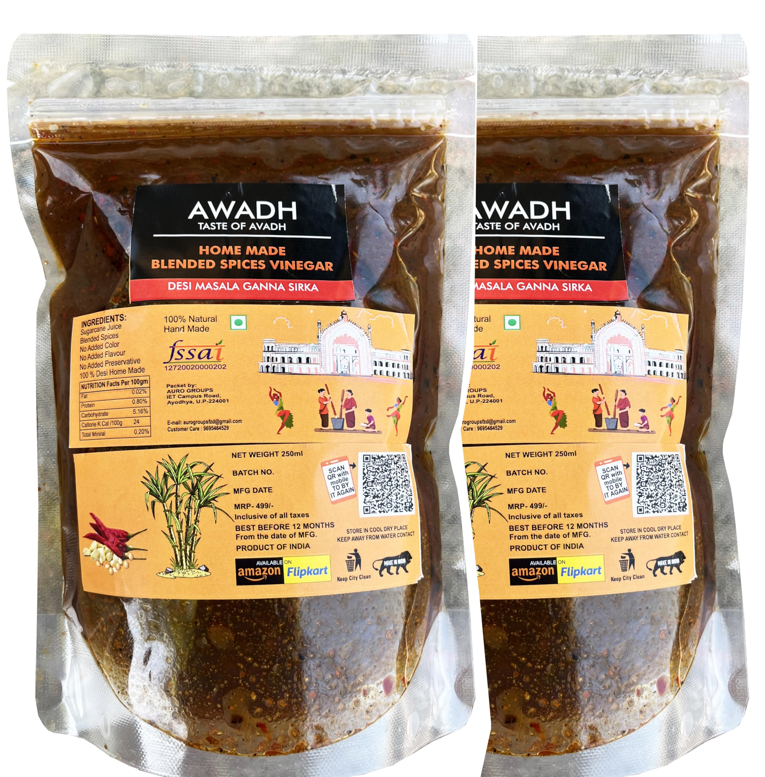 AWADH- Desi Sirka Desi Masala Sirka Country Vinegar With Blended Spices Home Made Country Vinegar With Blended Spices from Uttar Pradesh Matka Sirka Sugar Cane Vinegarr 450 ml (Pack oF 2)