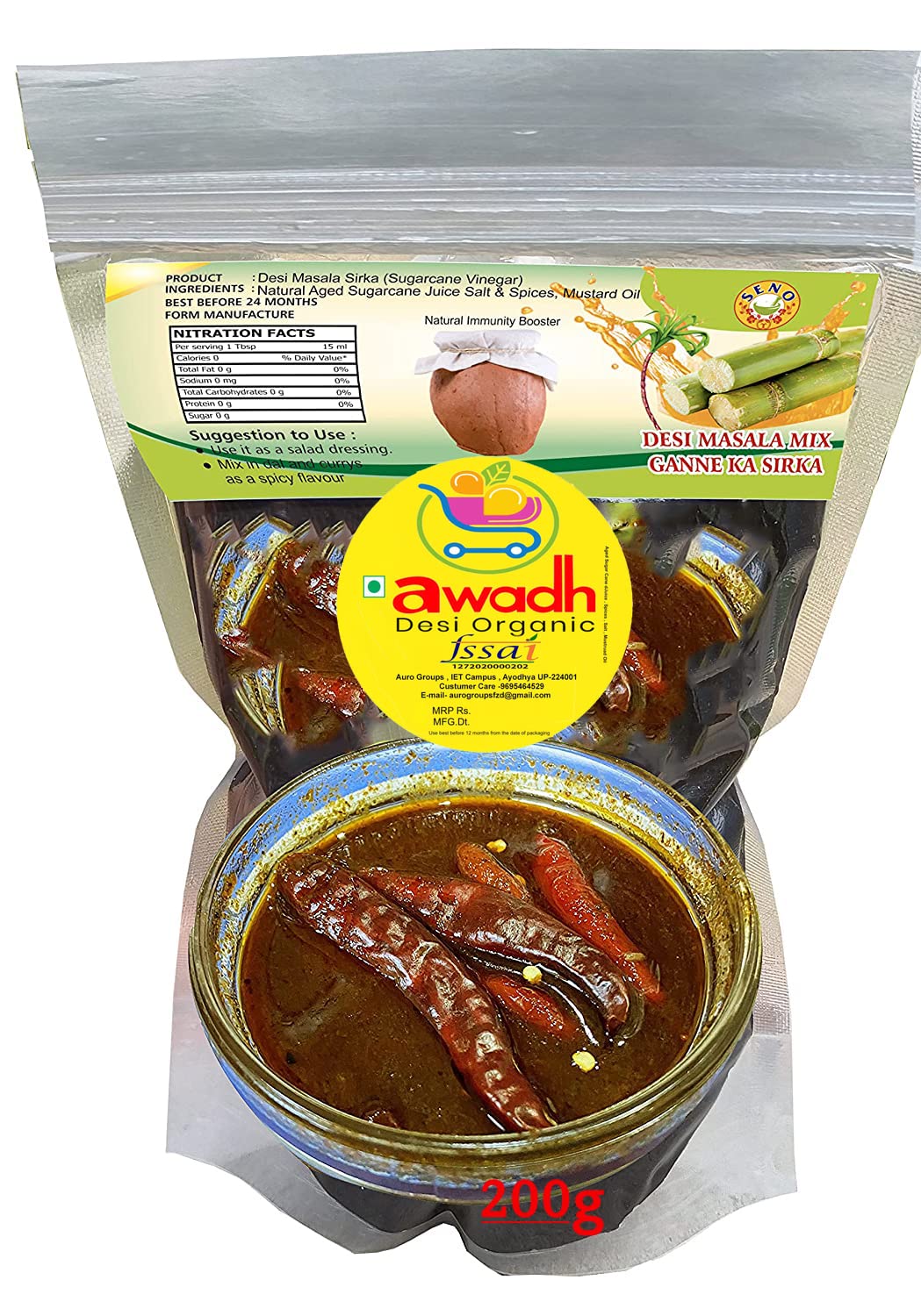 HomeGroceryFlavorsSauces & VinegarAWADH- Sirka Desi Masala Sirka Home Made Country Vinegar With Blended Spices from Uttar Pradesh Matka Sirka Sugar Cane Vinegar-200ml